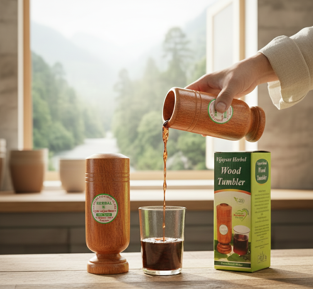 VijayBoost is made from natural Vijaysar wood and follows a simple Ayurvedic practice used for generations. By keeping water in the glass overnight, it gently infuses it in a natural way—without chemicals, additives, or effort. It’s an easy daily habit that fits into your routine and supports a more mindful, balanced lifestyle... Key benefits : Support balanced blood sugar levels as part of traditional Ayurvedic routines Encourage better digestion and metabolism through natural wood infusion Promote gentle detoxification by supporting the body’s natural cleansing process